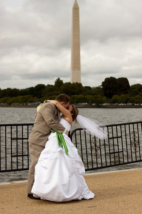 Friday was also our anniversary - 16 years! Fun fact: those of you who know me, may or may not know that my husband is a former Republican. Worked in Republican politics early in his career. Our wedding, (my Central Committee colleagues were highly amused by this) was actually at the Capitol Hill Club in DC. It was a spot where we spent many Friday nights at happy hour when he worked on the Hill. Not to mention, one of my old roommates had a membership there as well, so I spent time there before I met my husband. It was a beautiful venue, and right around the corner from the church where we got married.