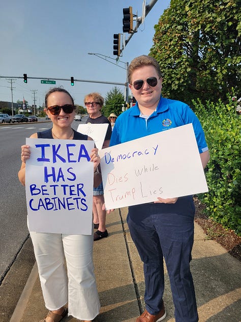 Last weekend was our South County sign wave! We had a decent showing on the corner of Solomons Island Road and Mayo Road on Saturday morning and we had a great reception! The woman hanging out of her car (passenger side!) yelling “THANK YOU FOR BEING HERE!” was my personal favorite.